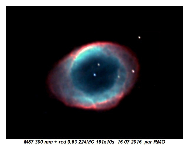 Seconde solution : pratiquer l' astrophotographie très courte pose . Réaliser des vidéos avec des poses très courtes entre 0.5 et 10 s max avec autoguidage ou sans autoguidage. Un exemple ici M57 161 x 10 s images compilées sans flat , sans dark , sans Bias avec une camera couleur non refroidie ASI 224 MC réalisée au 305 mm reducteur 0.63